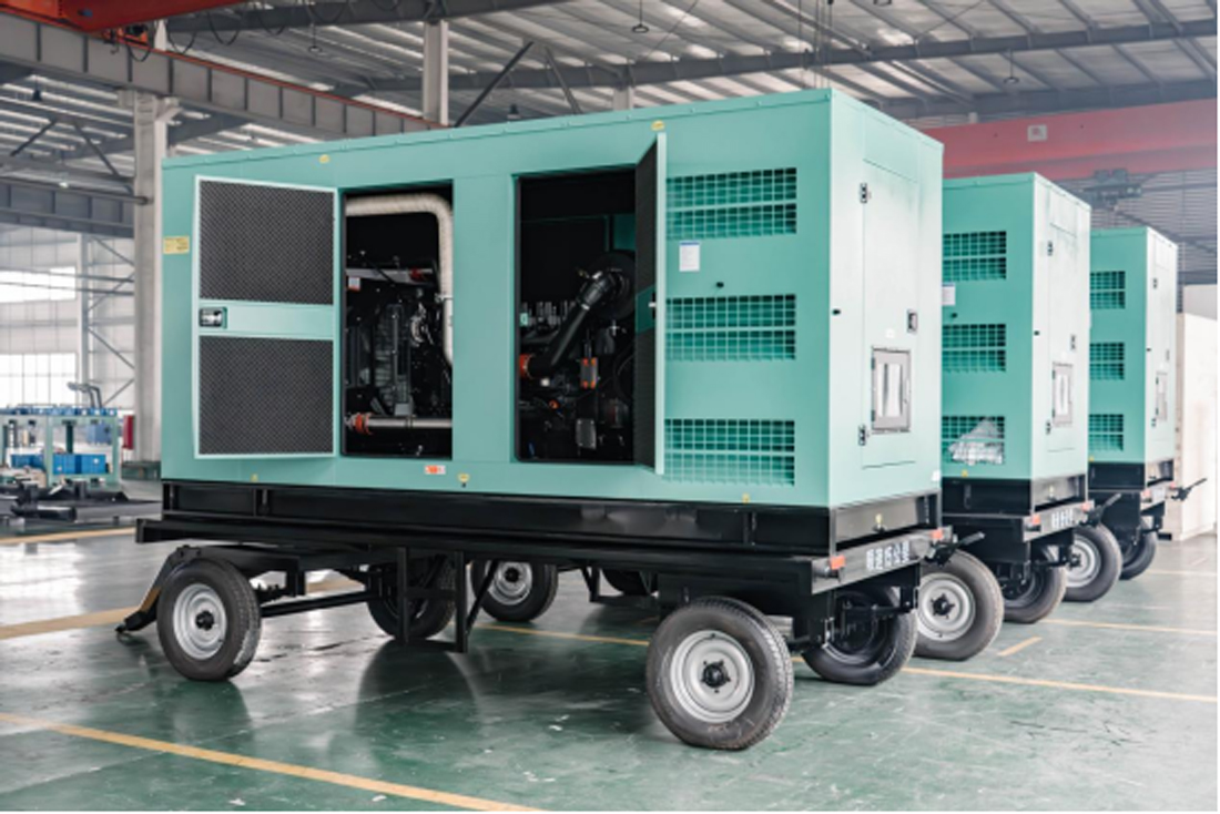启运当日,五台拖车式机组在厂区内完成最后调试,涂装醒目、排列整齐。经检验合格后,它们将装箱发运,预计经过海上运输后抵达津巴布韦,交付客户使用。